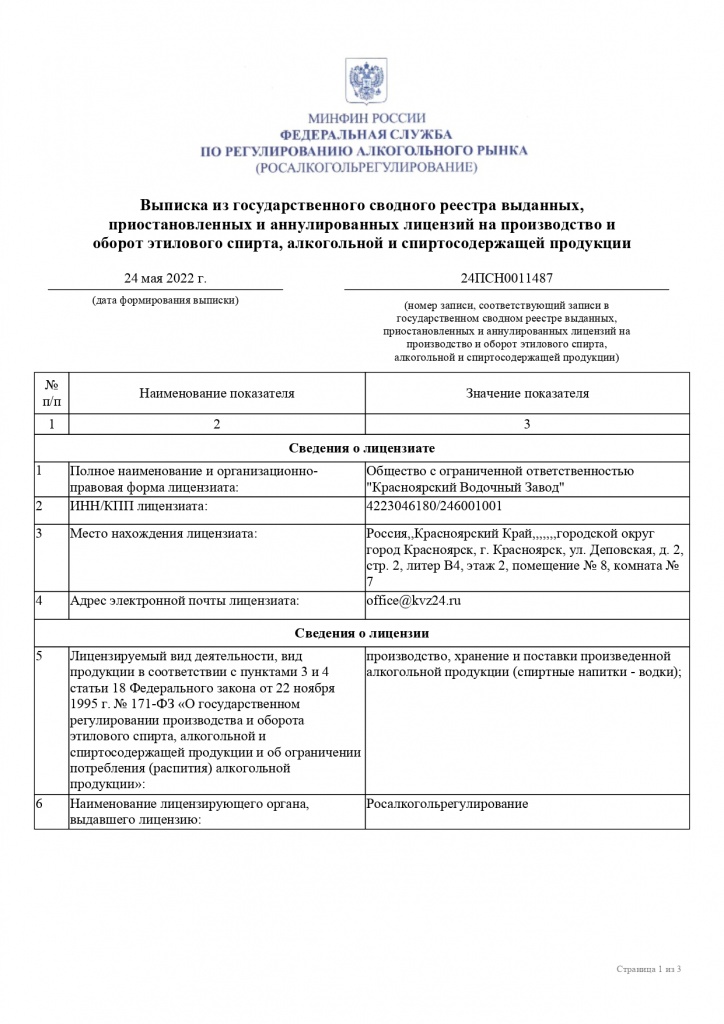 ООО «Красноярский Водочный Завод»