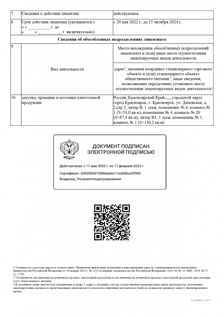 Лицензия на осуществление производства, хранение и поставок произведенной алкогольной продукции
