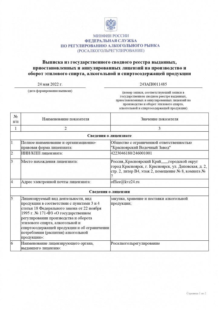 ООО «Красноярский Водочный Завод»